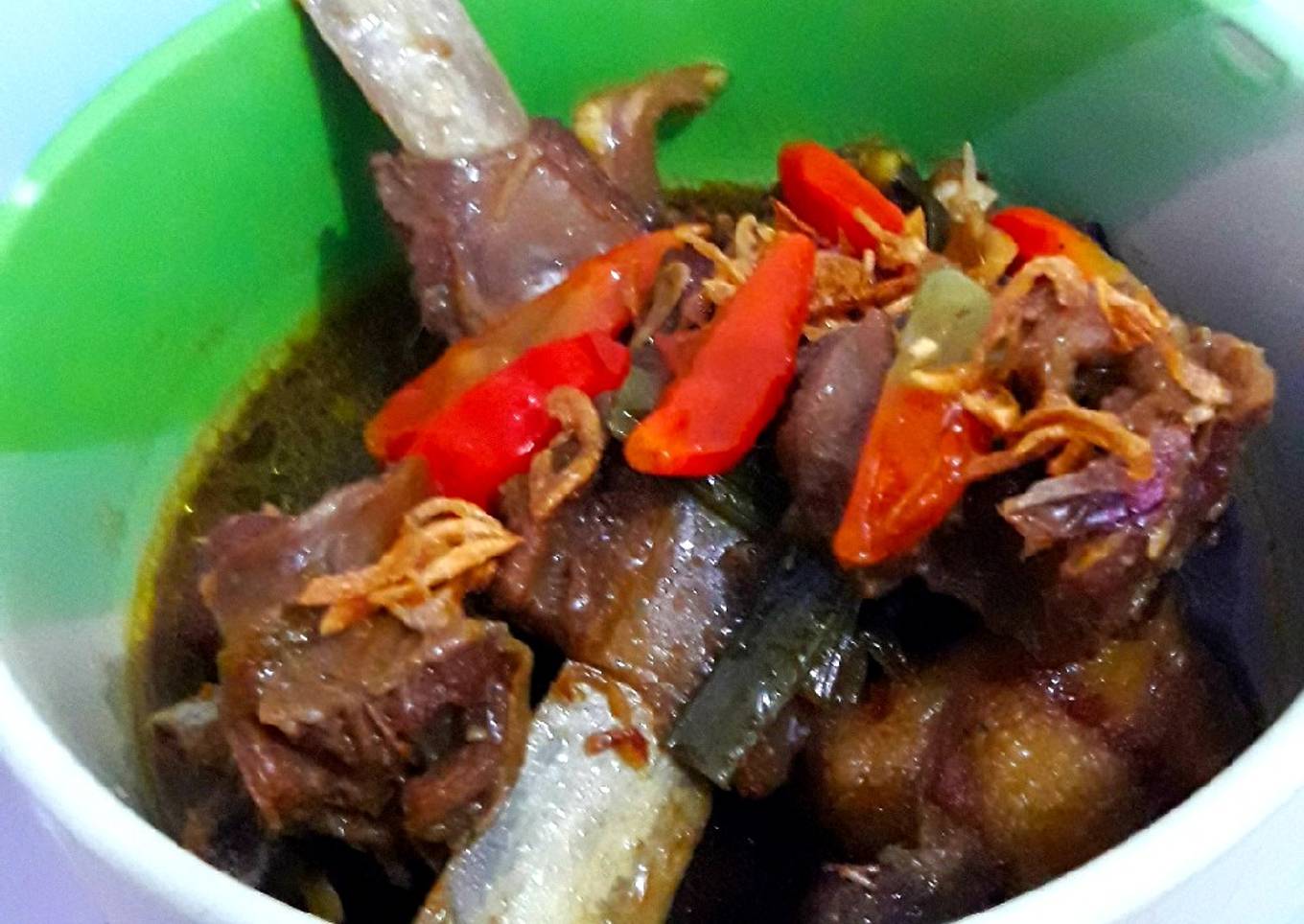 - Siapkan Mangkuk Saji, tuangkan Krengsengan Daging Kambing Tiga Rasa secukupnya. Hidangkan dengan taburan bawang merah goreng dan sepiring Nasi Putih hangat ������